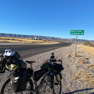 Van Pecos naar Ergens in woestijn op staats grens gebied van New Mexico en Texas. Een prachtig zicht op Guadalupe mountains🤩 Om 5uur s’morgens op de fiets tot 5uur S’avonds en een tijdslijn overgegaan, 1uur vroeger!!! Nu 8 ipv 7 uur verschil met België. Ijskoud en pikkedonker begonnen tot aan een tankstation 10min voor 9uur en om 9uur een videocal met TVL! Uitzending woensdag 19 januari…
